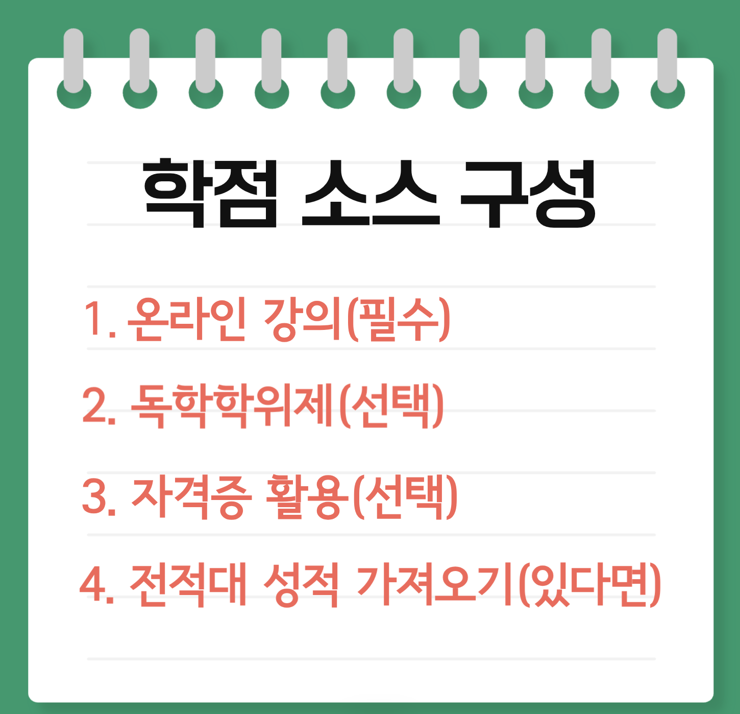 3) 학점 소스 구성: 온라인 강의 + (독학학위제/자격/전적대) 병행